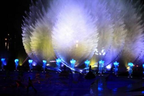 全球最亮的科视巨型投影系统在全球最大的多媒体现代化水秀剧场——深圳欢乐海岸水秀剧场,盛大上演多媒体激光主题水秀《深蓝秘境》,横跨120余米的水幕舞台,与激光烟花共舞,与音乐喷泉交响,创造了独一无二的水与火、光与影的浸入式全景视觉盛宴。