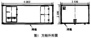 根据方舱的自重要求,结合工厂成熟的生产工艺装备特点,方舱仍采用大板式结构,整个舱体主要由六块夹层复合板、滑橇、铸钢角件和内、外角型件组装而成。复合板为夹筋夹层结构,外蒙皮为硬铝合金板2A12-T4,内蒙皮为冷轧钢板Q235A,内、外蒙皮之间为硬质聚氨酯泡沫塑料。方舱外形见图1。