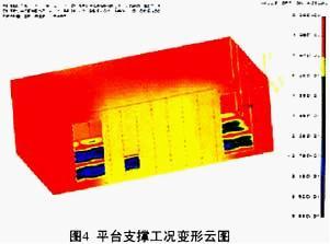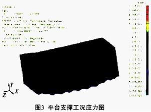 a.平台支撑工况:平台的四个角限制方舱在X、Y、Z方向上的平移。载荷均布在舱内地板上。