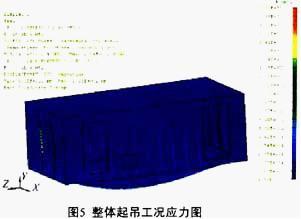 b.整体起吊工况:方舱顶部的四角为起吊位置,其中一角限制方舱在X、Y、Z方向上的平移,另外三个角只限制方舱在Z方向上的平移。载荷均布在舱内地板上。