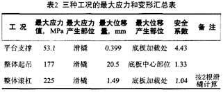 为了便于比较,将三种工况下的最大应力和变形进行汇总,得表2。