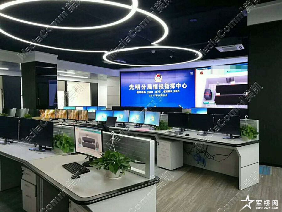 在深圳公安光明分局第三代情报指挥中心的建设中,MediaComm美凯基于光纤KVM技术的可视化坐席协作管理平台,通过跨网段跨平台操作、信号无黑屏切换、坐席权限分配管理、极致4K超高清画面等系统功能,帮助光明分局情报指挥中心在接处警系统、PDT调度台、运维监测系统、视综平台、云防平台、治理通平台等系统平台,实现指挥可视化、扁平化、实时监控、高清画面回传操作效果。