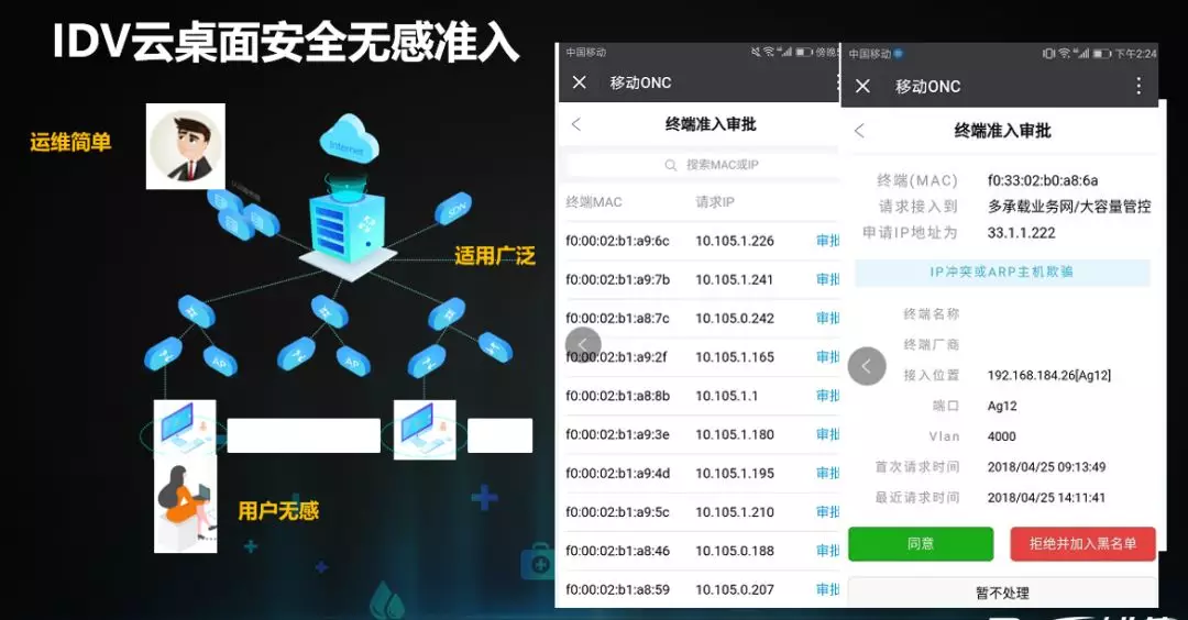 以新建院区为例,传统PC需要安装调试,然后逐台进行系统安装和测试运行,而通过MOUU医疗云桌面IDV产品,全部产品可以接电上线后统一在后台进行系统下发,最大化的节约了运维人员的工作量,用手机就可以实现无感准入,统一管理。日常管理中也可以通过软件监控全局情况,并获得安全告警提示,防患于未然。