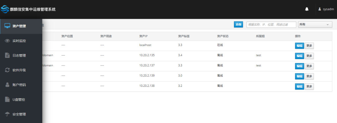 麒麟信安集中运维管控系统主要功能