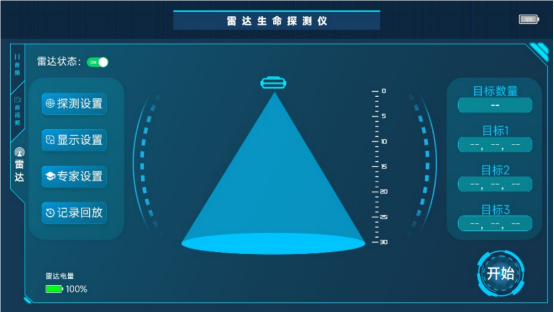 点击显控终端中的多模复合型生命探测仪软件图标,启动多模复合型生命探测仪用户终端监控软件。设备于软件自动连接。