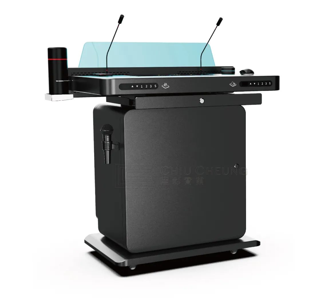 照彰智能演讲台搭配了一键电动升降功能,演讲人可以通过台面高低控制键,控制演讲台的高低和升降,这解决了演讲台与演讲人身高搭配的美学问题。