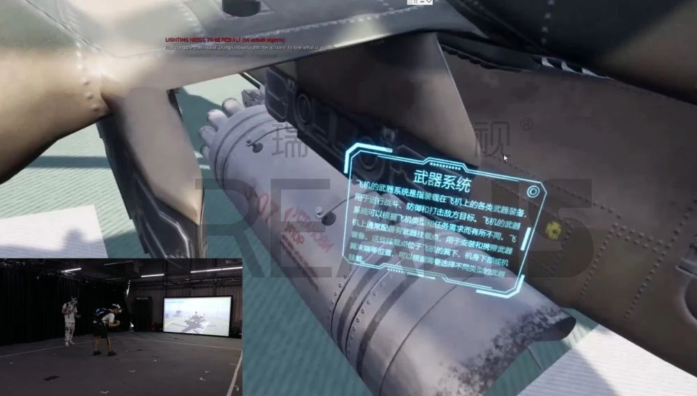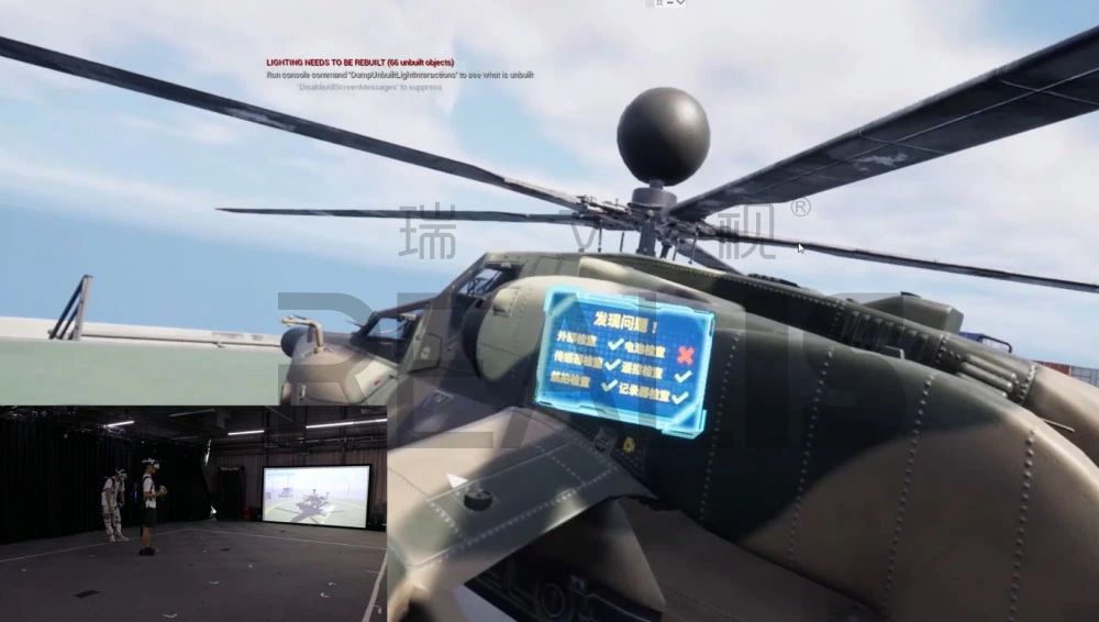 项目基于虚拟现实技术,围绕无人机的整体结构和运行机理,利用次世代建模技术还原了无人直升机的整体到局部,结合大空间动作捕捉系统,将实体人的动作融入到虚拟飞机操作场景中,进行虚拟教学的流程操作,提高了作训人员对无人机的结构的掌握,增强了对无人机常见问题的故障判断,熟练地了解和掌握飞机勤务,保证流程的重要性。相比于传统训练方式,本系统在教学方面有着直观、易操作、效率高、复用性强、安全和教学成本低等特点。