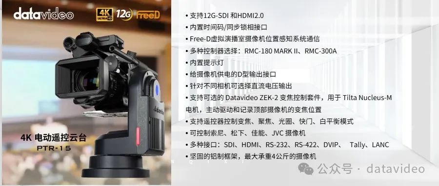 即将召开的BIRTV展会上,我们将隆重推出12G-SDI电动遥控云台——PTR-15。PTR-15 4K电动遥控云台秉承洋铭电控云台产品线的一贯品质,更在技术创新与实用性上实现了重大突破。采用高效的驱动系统,适配市面上绝大多数型号的4K广播级摄像机,实现对摄像机的精准远程控制功能。