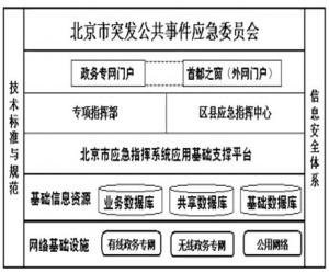 根据北京市《应急指挥系统信息化技术支撑体系》,北京市的应急系统能够体系结构细化为下图: