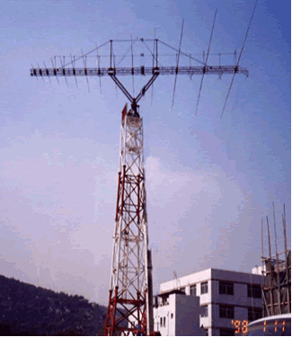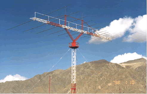 该天线可用做短波发射或接收天线,它辐射仰角低,可以进行远距离通信。它的转动系统是由计算机控制的,可以根据用户需要转到任意方向。常用于目标或自身常要移动的通信广播系统。可以根据用户需要设计不同功率容量的转动对数周期天线;另外根据场地的要求,该天线的支撑塔可以做成拉线塔(上图)或自立塔(下图)。