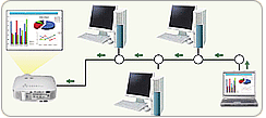 投影机借助网络,可以通过网线或服务器直接播放存储于PC中的图片及视频文件。共享文件夹中的视频文件也可以呗投影机直接播放,而无须开启Windows Media Player软件。由于NP3250+系列投影机能够直接读取PC或服务器上的文件,可以减少借助USB设备等时泄露信息的危险。支持的格式包括与windows media链接的JPEG, MPEG-2, WMV 或共享文件夹的JPEG, BMP, GIF, PNG,MPEG-2, WMV文件。