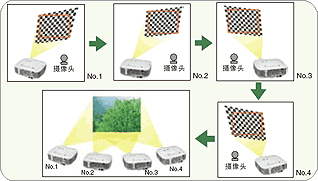 摄像头可以通过测试依次得出每一台投影机的校正数据。