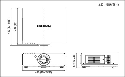 | PT-FDZ680/PT-FDZ670 | 498mmx175mmx440mm(19-19/32" x6-7/8" x17-5/16")(含标镜) |