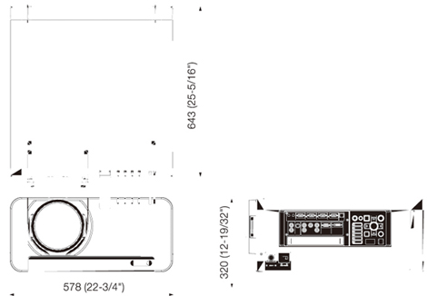 | 尺寸(宽X高X深) | 576X320X643毫米(22-3/4"X12-19/32"X25-5/16")(没有镜头) |