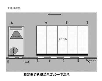 艾默生公司在精密空调领域应对现场复杂环境有各种解决方案:如严寒地区的乙二醇解决方案,长距离的水冷机组解决方案,针对局部过热的吸顶式解决方案等。无一不是贴心考虑,专业专心的体现。下图是典型的精密空调送风方案: