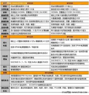 根据不同的产品特点,笔者对性能、可靠性、设计新颖、易用性、节能减排、冗余热插等诸多方面进行了对比。详细条例可见下列表。