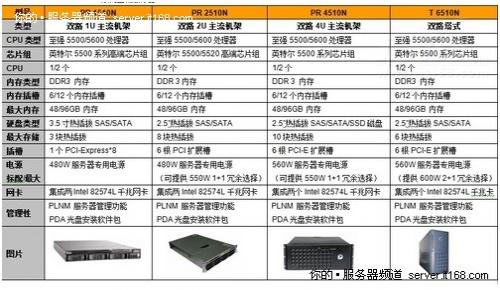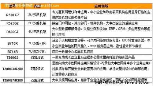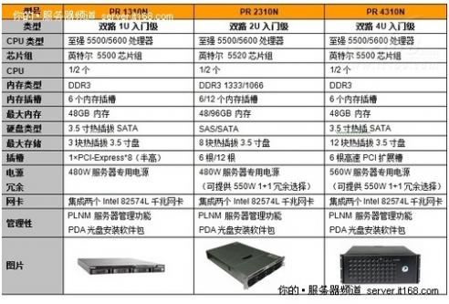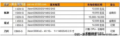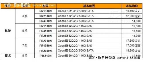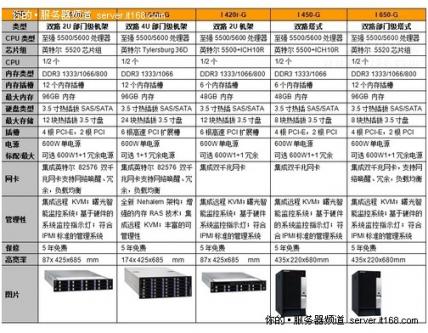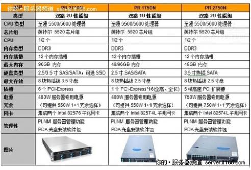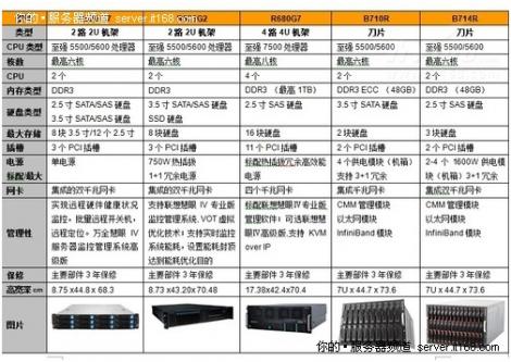 为了便于比较,笔者以处理器为至强5620和至强7520为标配,硬盘均为单块。参考浪潮最新发布的产品报价单上的型号来进行比较。