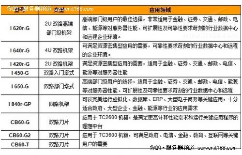 四路和刀片的产品应用领域相近,I840r-GP侧重在虚拟化、数据库和电子商务应用。刀片服务器超越了传统的机架服务器,更加适合超强计算密度的领域。