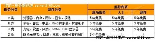 还有一点需要特别说明,曙光服务器的保修时限要长于其他厂商,5年的免费服务是其一大特点。下表列举了保修期限和方式。