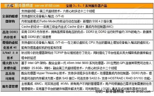 宝德基于英特尔32nm至强5600的服务器天然具有最优能耗比,并以差异化产品提升市场竞争力。分为3系、5系、9系,共升级十多款机型。