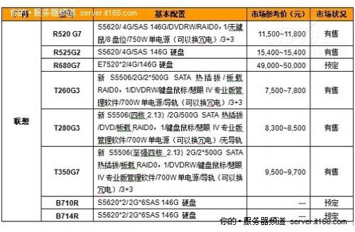 从产品的配置来看,当前有现货的主要还是新至强5506(四核213),个别机型采用了至强5620(24G)。从价格上比较,联想的服务器价格相对国外品牌的机型,具有一定的竞争优势。为了便于比较,笔者以后面的产品型号和价格表为例。