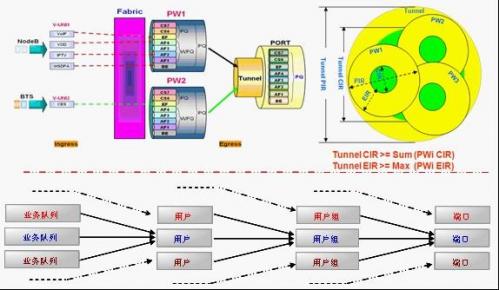 这个是目前业界最先进的QOS技术,应该说 也是对Diffserv模式从单维管理到多维调度的一个提升,烽火通信是业内少数能够在PTN设备上开发出此QOS模式的厂商之一,在具体的应用上,该方 式能够实现对多用户多业务进行有区分的调度和服务,也能同时控制调度业务的流量并且根据业务的优先级进行调度,相对于传统的QOS而言,在一些QOS的关 键参数(比如包括CIR/PIR/WRED等)设置上更加的灵活便捷。
