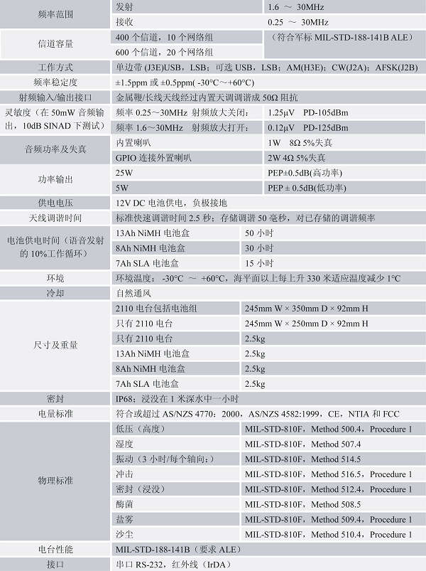 2110低消耗功能可使电台长时间工作,且它的创新电池管理系统可以使用户清楚地了解电池的使用状态。