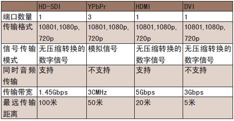非压缩方案的传输主要通过HD-SDI、YPbPr、HDMI、DVI四种高清接口,而如何在这四种接口中选择,成为目前比较关注的话题。