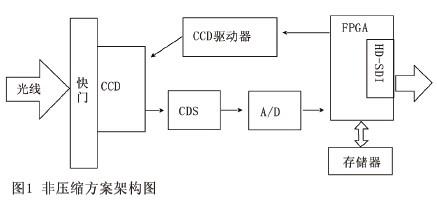 非压缩方案系统的核心是FPGA,它主要负责两方面的内容:CCD驱动算法实现和协议转换。整个方案技术上的难点也集中在这两点上。