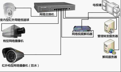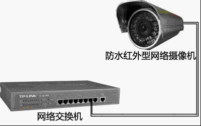 如果要求晚上或者在灯光较案的时候也能够看到清晰的时候,此时可选择安装防水红外型网络摄像机,接入交换机,最终接入到监控管理中心。