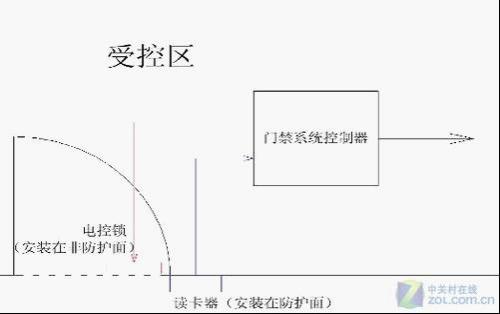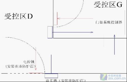 所以在GB50396-2007《出入口控制系统工程设计规范》的强制性条文中第704中规定:执行部分的输入电缆在该出入口的对应受控区、同级别受控区或高级别受控区外的部分应封闭保护,其保护结构的抗拉伸、抗弯折强度应不低于镀锌钢管。由此可见,在设计这些部位的线缆一定要严格采取防护措施,减小其对安全等级的影响。