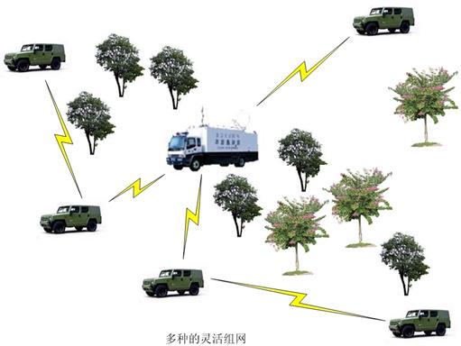 采用无中心组网结构,便于灵活调整网络,避免战场或演习时出现单点故障,提高网络的可靠性。