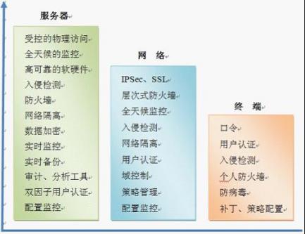 从图1-1组成信息系统的服务器、网络、终端三个层面来看,现有的保护手段是逐层递减的,这说明人们已经非常重视服务器和网络层面的安全防护,而对终端的安全防护重视程度不足。信息系统的安全需要全方位的防护,终端安全尤为重要,主要原因有: