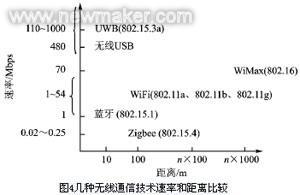 从图4中看,主要的无线技术都集中在1 Mbps以上的速率,新的标准还在追求更快的速率;而Zigbee恰恰是填补低速率端无线通信技术的空缺,与其他标准在应用上几乎无交叉。在实际应用环境中,低速率、低成本的无线通信在自动控制、无线传感器网络、家居自动化等诸多领域更贴近日常生活,同样具有广泛的市场。从现今的市场看,每一种无线通信技术的产品都有各自的一些特点,或在距离、或在成本、或在速率等方面,因此,在今后一段时间内,虽然会有一些竞争,但仍会有多种无线通信技术的产品在市场上共存。