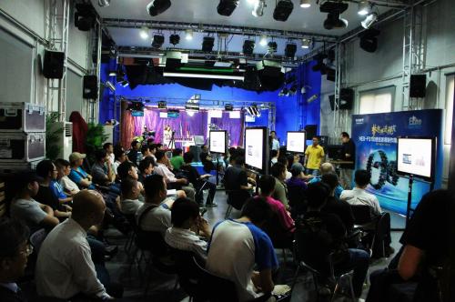 在此前四城的宣讲活动中,作为“精英100扶植计划”的承办方的中国数码影像委员会(DVCC)的工作人员在活动现场搭建起一个6mx45m的大型拍摄区供来宾们使用,拍摄区使用LED专业影视灯光以及镝灯、黑旗、米菠萝、反光板等进行照明,主要由五台索尼FS100、数台索尼高清专业监视器以及轻型移动轨、专业模特、多种道具组成。不同机位有不同的功能分区,第一台FS100用于测试摩尔纹、斜线平滑度以及低照度下的成像质量,与现场另外一款典型的数字高清单反相机进行比较;第二台FS100配备一支135mm F18的索尼α系列卡口镜头,与一台感光元件大小为1/3英寸的索尼HXR-NX5进行大画幅与小画幅在浅景深方面的表现对比;第三台FS100主要用于升格功能的演示;第四台配备了HXR-FMU128这款外置存储单元,可以将拍摄的数据保存在这个安全性更高的存储介质里;此外还有一台由专业遮光罩、大型滤色镜系统、跟焦器、索尼7英寸监视器以及一款NINJA高码流便携式录像机全副武装起来的FS100。