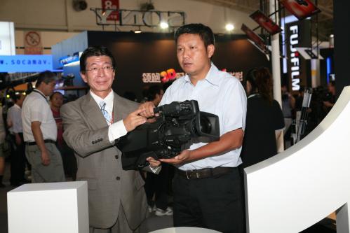 索尼于今年3月CCBN展会上发布的新品HSC-E80高清系统摄像机在今年BIRTV展会上迎来它的第一位主人——丽江广播电视台。8月25日,展会第二天,索尼在8号馆的展位上举办“索尼中国首台HSC-E80高清系统摄像机交接仪式”,双方领导站在索尼展台精心设计的NO1超大模型后,由索尼中国专业系统集团副总裁井手司治将首台HSC-E80交到丽江市广播电视台台长和丽军手中。