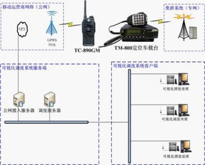 (5)350MHz无线语音调度通过无线语音调度台,无线语音调度台与集群系统无线连接,可视化调度系统客户端软件调用无线语音调度台的接口进行无线语音可视化调度。