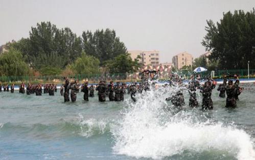 济南军区某高炮旅为锤炼官兵海上作战的能力,在营区内修建了海上模拟训练场,训练场配备了先进的人工造浪设备,能够制造出8种大小不同的海浪,通过训练提高了官兵的训练水平,为内陆部队组织海上训练提供了训练平台。