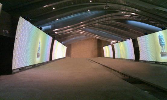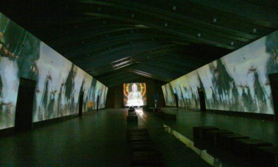 近日,开山1600周年的世界文化遗产云冈石窟,在陈列馆序厅安装了140米长、45米高的大型投影幕墙,24台美国Christie(科视) DS+10K-M数字投影机同时投射,用写意的镜头语言和超宽的镜头视野,将云冈石窟的开凿过程和北魏皇家贵族虔诚礼佛的场面娓娓道来。