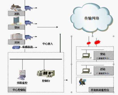 部队与下属营站和连队主要通过SDH 线路连接,每个连队都有独立的宽带线路(2M带宽以上),可以为多媒体数据流传输起到很好的保证。但每个网络接点的网络环境又有不同,决定了我们设计的远程多媒体系统前端信号(视频、音频、报警信号、模拟量等)采集设备的系列性、核心多媒体处理设备的系列性、信号质量的多样性、信号传输的不同优先级、接警终端软硬件的系列性。这也与我们对目标用户的定义密切相关。