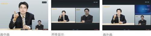 KDV1000支持画中画、画外画、对等双显、三画面等各类视频显示方式,可同时观看发言会场和本地会场,并可支持双视频流显示。