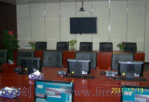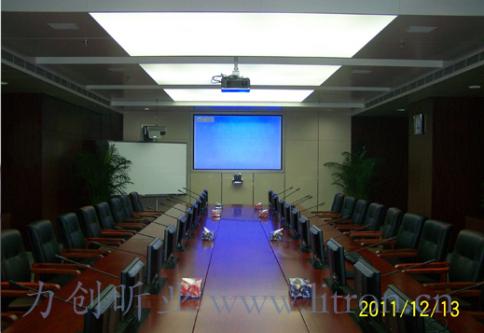 领导会议室为会谈式会议形式。在系统的设计阶段,充分考虑到每位与会者的视听需求,在每位与会者座位设置了液晶升降屏,发言话筒,多用信号接口设备。为保证会议扩声的声场均匀度及语音清晰度,在会议桌上方天花布置了8只吸顶扬声器。会场内设置3台摄像机,分别拾取会议桌两个长边和一个短边的影像,为保证拾取优质的画面,设计中依据中华人民共和国通信行业标准- YD/T 5032—2005“会议电视系统工程设计规范”对装修的照明提出了量化的要求,包括:光源采用色温为3200K 的三基色灯、主席区的平均照度不得低于800lx、一般区域的平均照度不得低于500lx、投影电视屏幕区照度不应高于80lx等;并且对摄像机机位作了优化设计,使其摄取的人物图像构图科学,色彩真实,感官舒适。 |