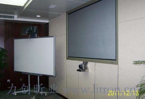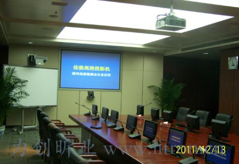 对于主显示画面,采用了日本CANON三片LCOS反射型投影机加美国ACCUON光学正投屏幕的组合,屏幕尺寸为120英寸。 由于本会议室观看者范围形状狭长,对于光学正投屏幕的使用是非常理想的,其23的屏幕增益优势也得到了很好的展现。 |