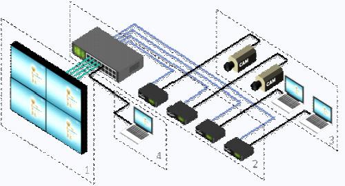 TNet物联网拼接控制系统采用全新一代基于以太网的分布式架构,突破了以往的拼接控制器在稳定性、扩展性、信号类型以及传输距离等方面的限制,拥有稳定性高、无限扩展、信号质量好、传输距离远等优势。其分布式的结构提高了系统的整体稳定性,单个节点的损坏不会影响整个系统的功能,并从结构上提供了无限扩展的可能性——只需增加相应数量的节点 连接至交换机;而基于网络的特点使整个系统的布局更灵活,与其他系统的衔接也更方便,并可在此基础之上开发出许多其他方面的应用。