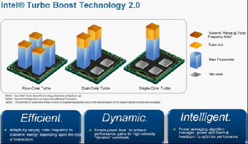 睿频加速和超线程技术可以说是酷睿家族中的看家本领,目前这项技术已经发展至20版本。这项技术发展到今天可以说是非常的成熟,因此Ivy Bridge将会继续沿用当前睿频加速20技术。