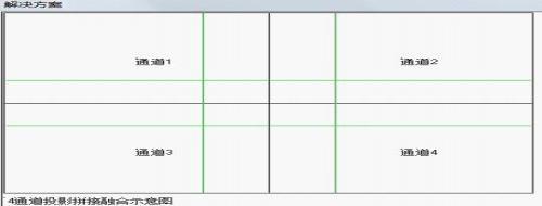 2)塑模沙盘投影:本方案所采用的是横向2通道,纵向2通道的投影拼接融合。投影机选择的投射比例为4:3镜头型号为08。在投影距离为不小于341米的情况下每个投影机可以投射出426*32平米的画面。由于拼接融合的要求每个通道之间都需要留出通道本身分辨率至少1/8的分辨率用于融合,经过几何矫正以后投影面积(幕的面积)为8*533平米。