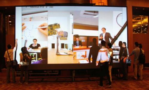 这套系统可实现面对面的无限点互动触控,高清晰的实物/文档展示、快速流畅的开窗、布局和信号切换以及光亮环境的高清晰投影。