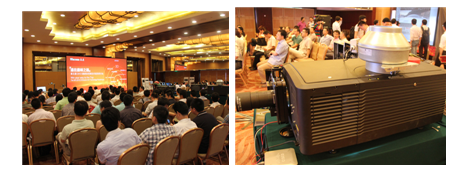 2012年7月4日14:10分,上海华亭宾馆大宴会厅,一场4K电影震撼上演,200多位位观众屏息观看。原来“通往巅峰之路”第五届(2012) 赢康音视频技术巡回研讨会正在首站上海拉开序幕。