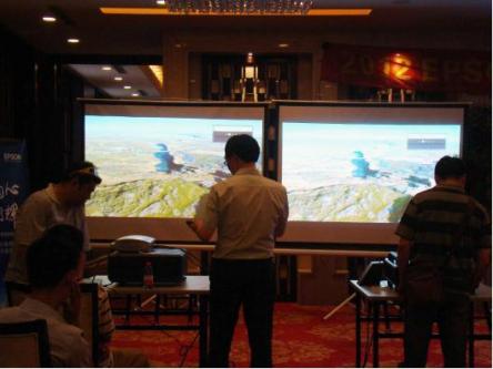 这种双通道融合方案中,由于使用了8500流明亮度的爱普生EB-Z9850W投影机,因此即使环境光影响较大,该方案也依然可以演示出明亮清晰而且炫丽无比的大画面,而且由于有内置融合系统,所以达到了融合后的显示亮度无损失。相对一些采用外置融合方式的方案而言,爱普生双通道融合方案还有效缩短了投影距离。