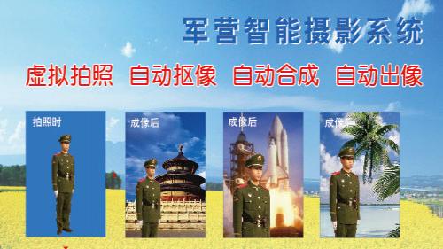 【军营智能摄影】系统,是采用固定位置,智能虚拟合成拍照系统,既满足官兵数码时代的拍照需求,又严格符合军队保密规章制度。